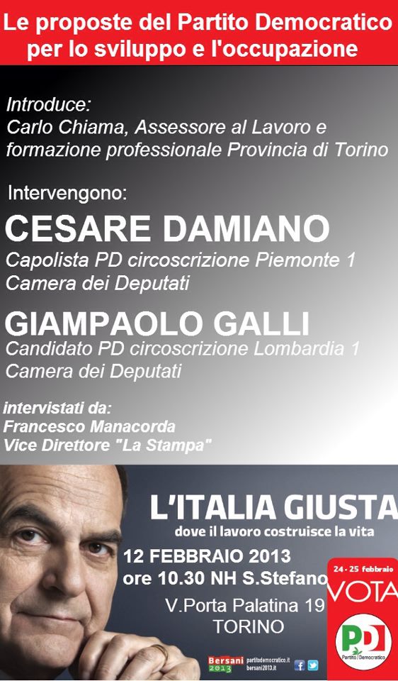Le proposte del Partito Democratico per lo sviluppo e l’occupazione – Torino, 12 febbraio